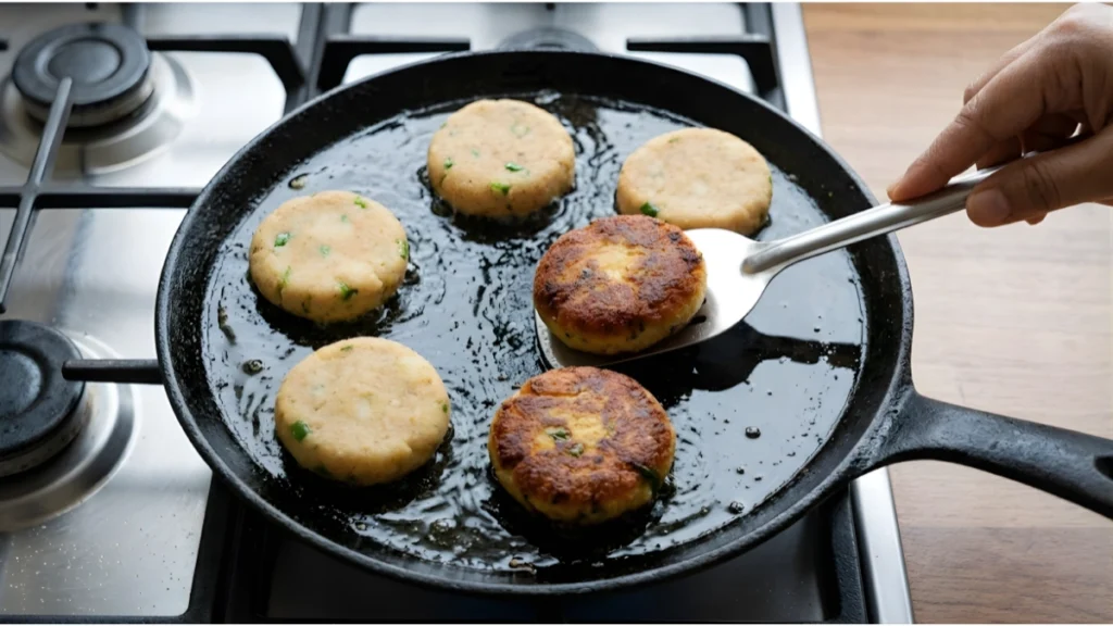 તવા પર થોડું તેલ ગરમ કરો અને ટિક્કીને બંને બાજુ ગોલ્ડન બ્રાઉન થાય ત્યાં સુધી શેકો. બહારથી ક્રિસ્પી થાય એટલે તૈયાર છે.