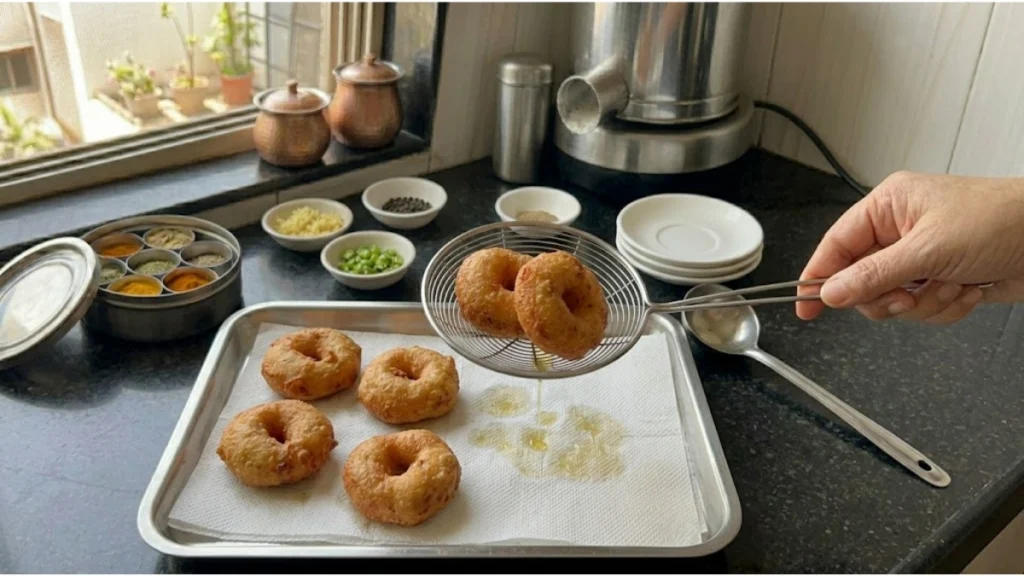 જો વધુ કરકરા વડા જોઈએ તો બેટર પીસતી વખતે પાણી બહુ ઓછું ઉમેરવું. થોડું ચોખાનું લોટ ઉમેરવાથી બહારની લેયર વધુ ક્રિસ્પી બને છે. બેટર તળતા પહેલાં ફ્રિજમાં દસ મિનિટ રાખશો તો આકાર વધુ સારી રીતે રહે છે.
