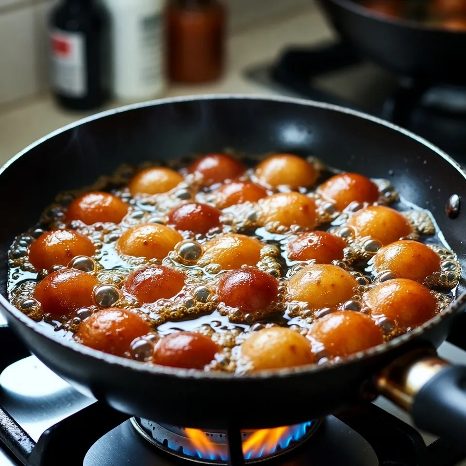 એક કડાઈમાં ઘી અથવા તેલ મધ્યમથી ધીમી આંચ પર ગરમ કરો. હવે ગુલાબજાંબુ ધીમે ધીમે નાખો. સતત હલાવતા રહો જેથી સરખા બ્રાઉન થાય. બહુ ઊંચી આંચ પર તળશો તો બહારથી બળી જશે અને અંદરથી કાચા રહી જશે.