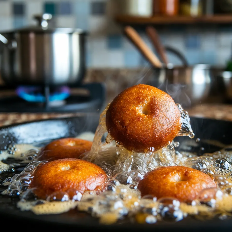 એક કડાઈમાં તેલ ગરમ કરો. મધ્યમ આંચ રાખો જેથી મેદુવડા બહારથી ક્રિસ્પી અને અંદરથી નરમ થાય.