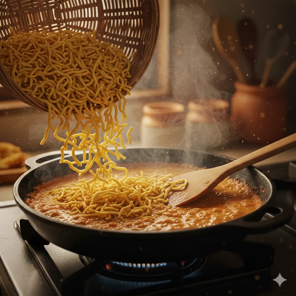 સ્ટેપ ૬ ગાંઠીયા ઉમેરવા