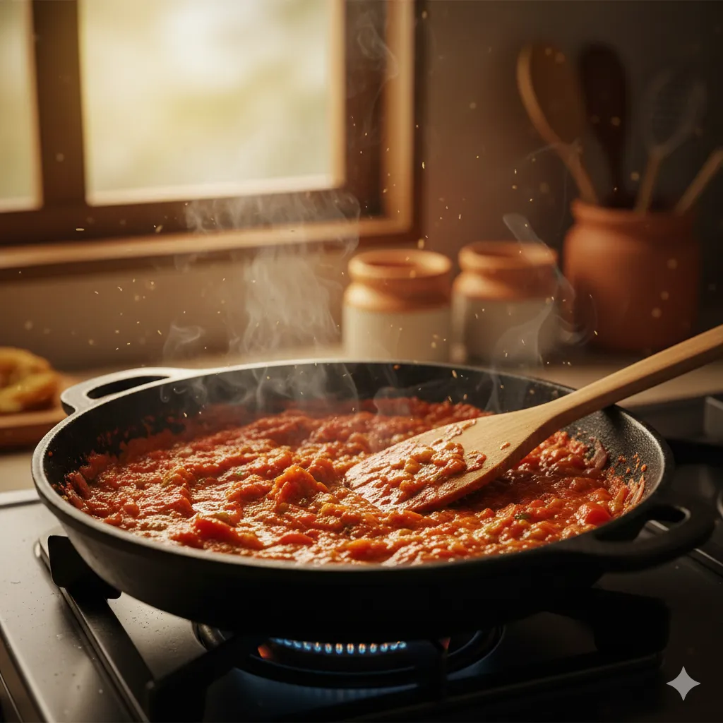 સ્ટેપ ૩ ટામેટું અને મસાલા ઉમેરવા