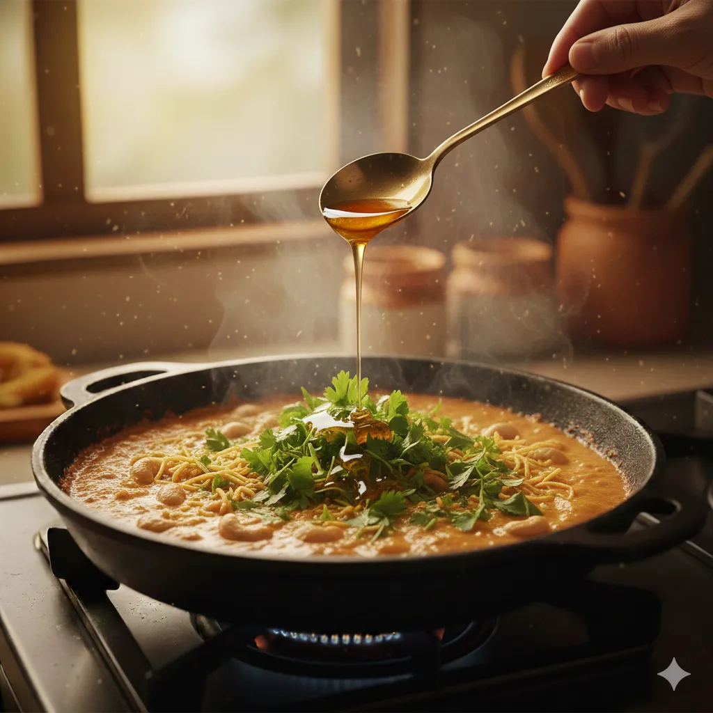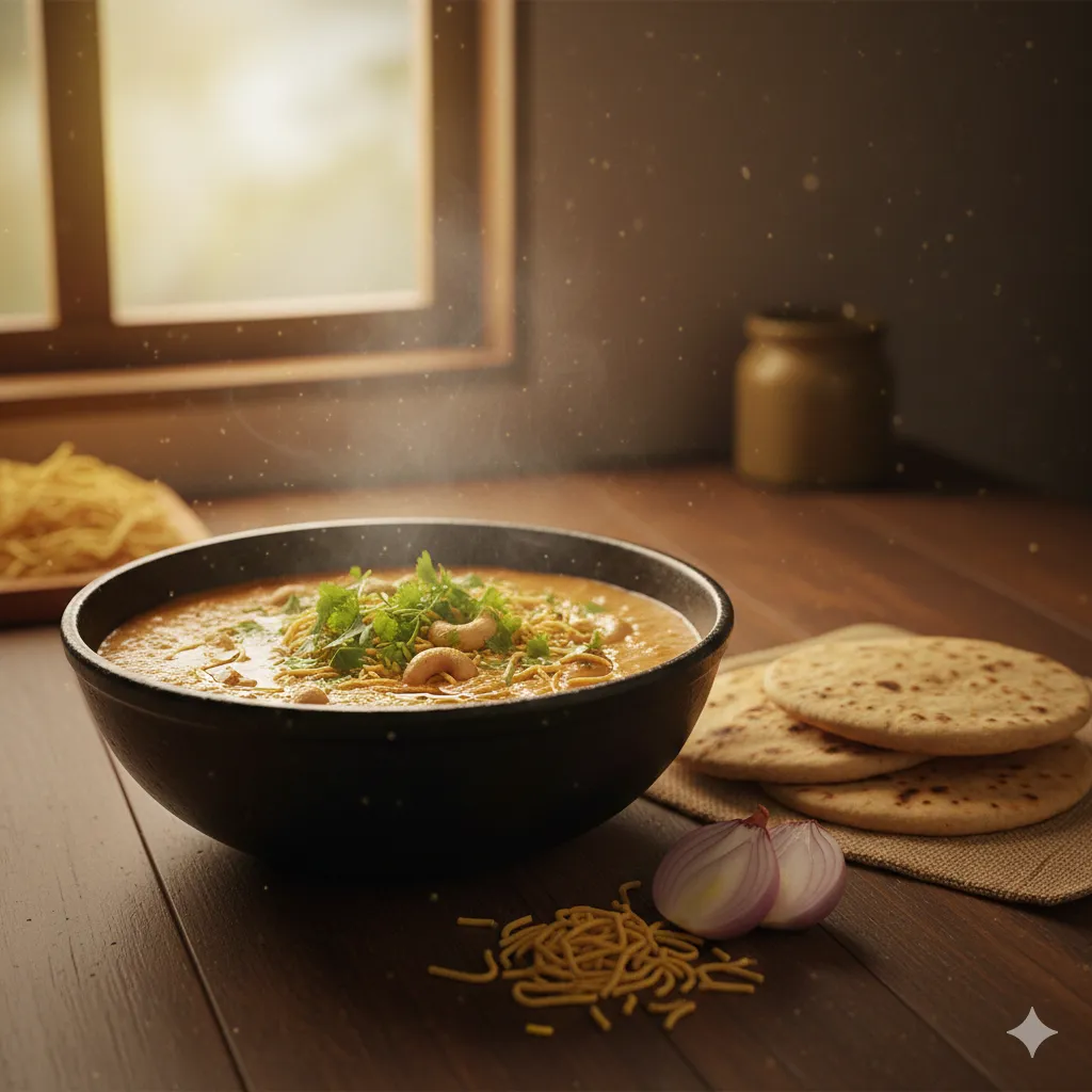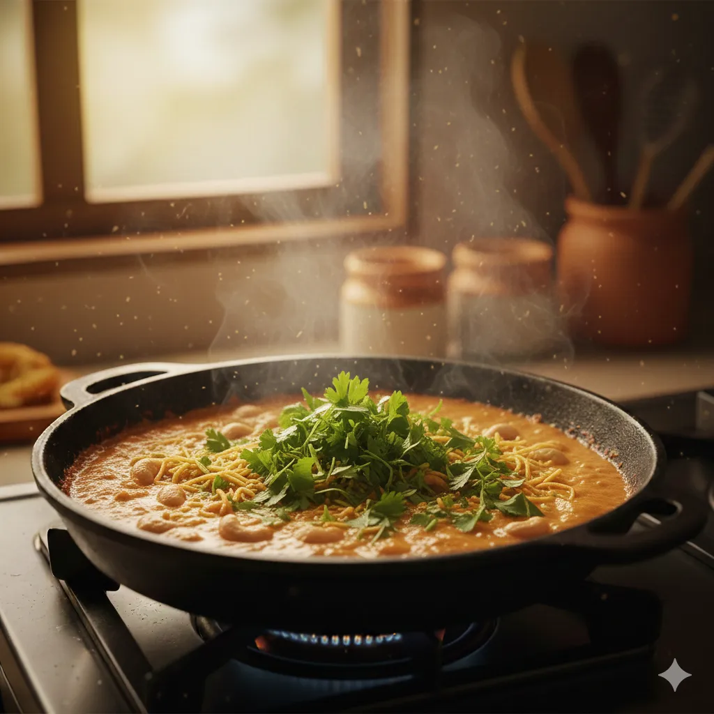 ગુજરાતી રસોડામાં ગાંઠીયા શાક એક એવી વાનગી છે જે ઝટપટ બને અને સ્વાદમાં એકદમ ધમાકેદાર લાગે. ખાસ કરીને છાશવાળું કાજુ ગાંઠીયા શાક તો ભાખરી, રોટલી કે ભાત સાથે એવો મસ્ત લાગે કે અલગ શાકની જરૂર જ ન પડે. છાશની ખમાશ, મસાલાનો ચટાકો અને ઉપરથી કાજુની શાહી ફીલ આ શાકને એકદમ સ્પેશ્યલ બનાવી દે છે. જ્યારે ઘરે કંઈ ખાસ બનાવવું હોય પણ સમય ઓછો હોય ત્યારે આ શાક સૌથી બેસ્ટ વિકલ્પ છે.