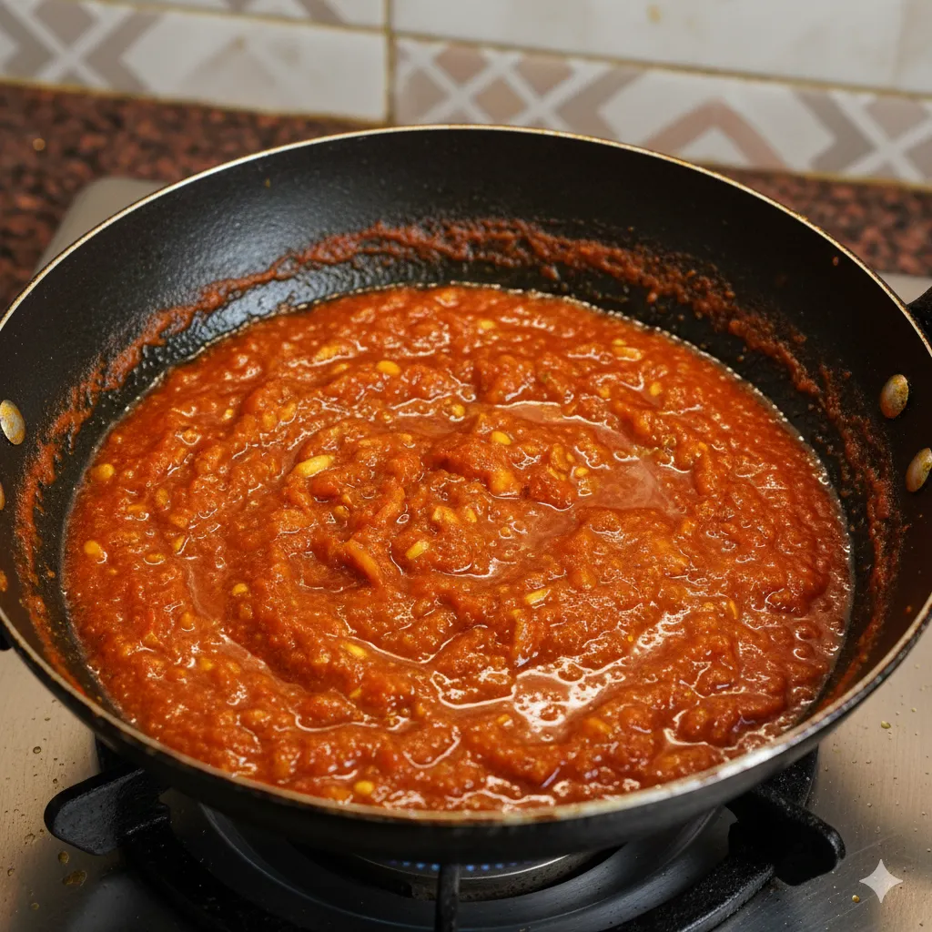 સ્ટેપ ૩ ટામેટું અને મસાલા ઉમેરવા