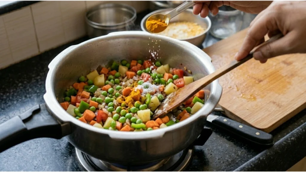 સ્ટેપ ૪ શાકભાજી અને મસાલા ઉમેરવા