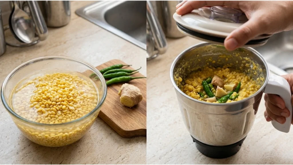 સ્ટેપ ૧ દાળ પલાળવી અને પીસવી