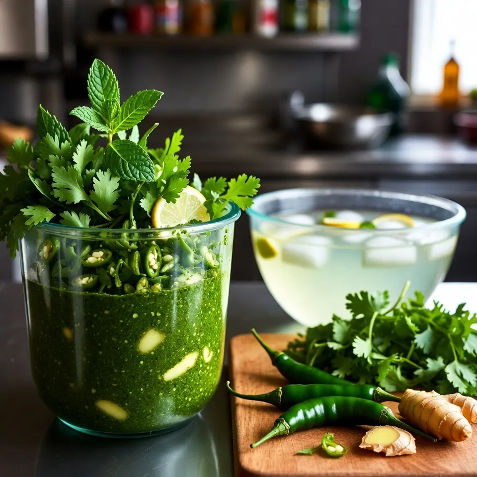 મિક્સી જારમાં ફુદીનો, કોથમીર, લીલા મરચા અને આદુ ભેગું કરો. તેમાં થોડું પાણી ઉમેરીને એકદમ સ્મૂથ પેસ્ટ બનાવો. આ લીલો મસાલો જ પાણીપુરીના પાણીમાં તાજગી અને ચટપટો ટેસ્ટ લાવે છે, એટલે પેસ્ટ પરફેક્ટ બનાવવી બહુ જરૂરી છે.