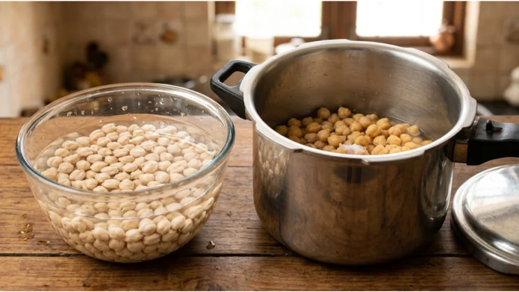 સ્ટેપ ૧ ચણા પલાળવા અને બાફવા