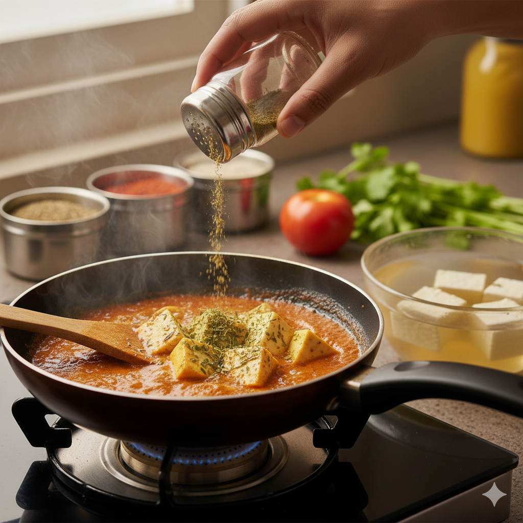 - પાવડર મસાલા: લાલ મરચું (કાશ્મીરી), હળદર, ધાણાજીરું, ગરમ મસાલો અને કસૂરી મેથી.
