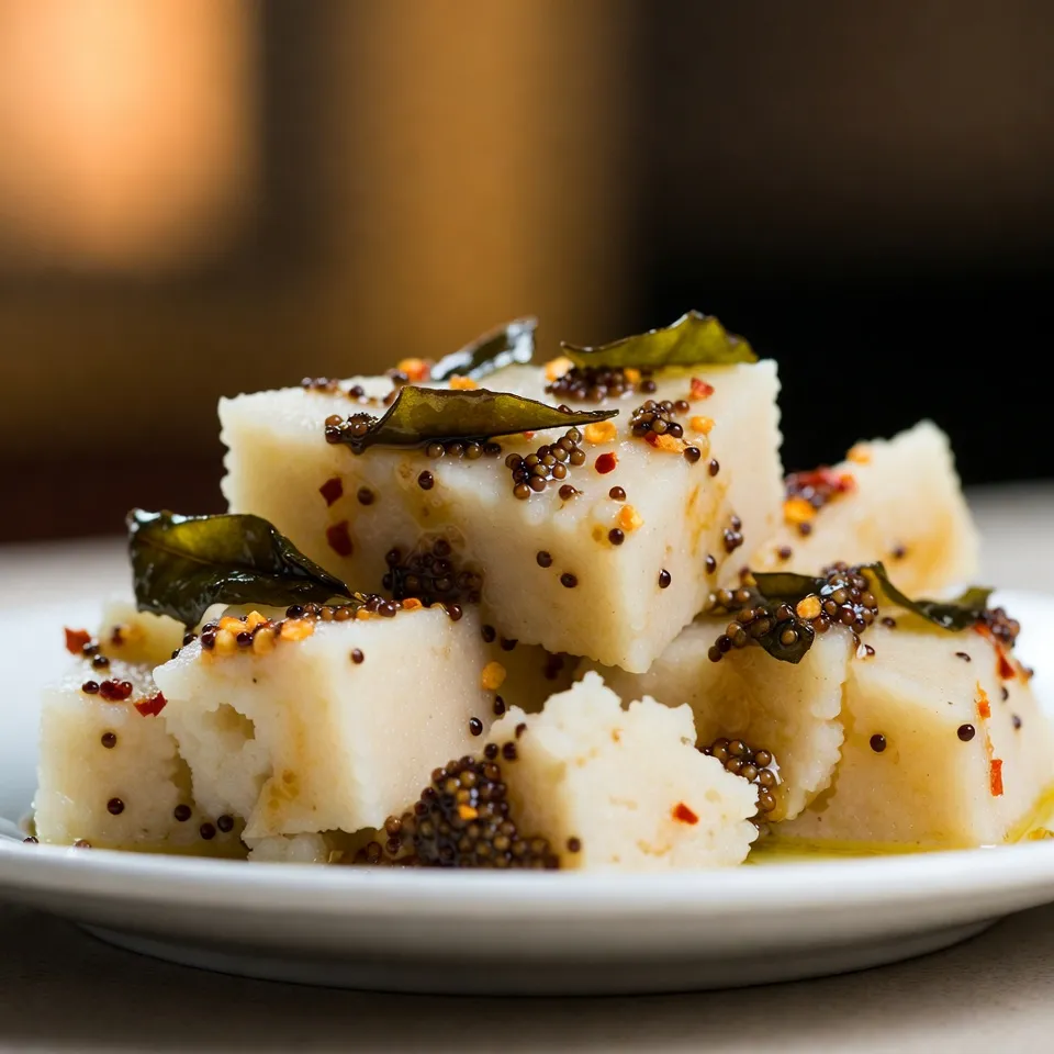 ઇદડા ઠંડા થવા દો અને પછી ચોરસ ટુકડામાં કાપો. ઉપરથી વઘારનું તેલ સરખું ફેલાવો. ગરમાગરમ ઇદડા પીરસવા માટે તૈયાર છે.